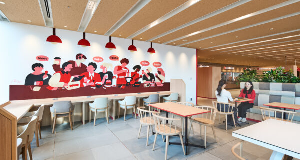 明治本社のリニューアルオープンした社員食堂「meals」に菊地伊織の壁画を展開