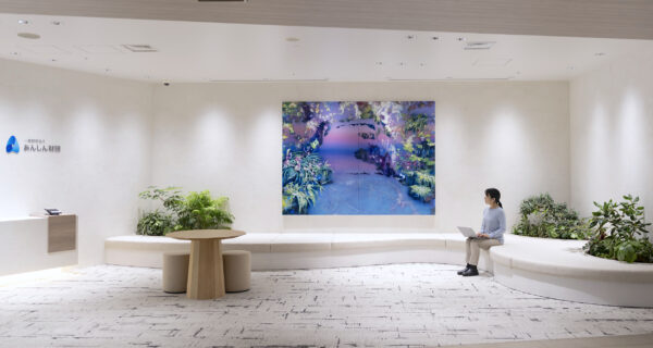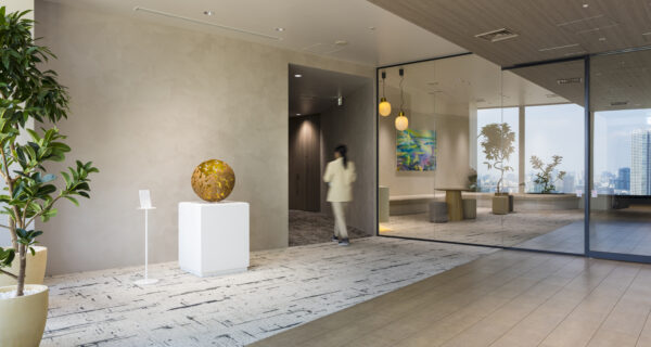新築オフィスビル「麹町弘済ビルディング」1階エレベーターホールに、若手アーティスト大日方伸氏(積彩)による大型レリーフアートを設置しました。3Dプリンターで積層された樹脂が光を反射し、見る角度によって色彩が変化するダイナミックな作品は、建物とともに進化するオフィスの姿を象徴しています。
