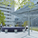 社の原点となった「硬貨計数機」を広場全体に反映した求心力のあるデザインで、視覚的に社の理念や歴史を共有することを計画の軸とした。デザインコンセプトは、ランチやミーティングなど社員のための活動(=Activity)を、四季折々で変化を楽しめる植栽計画(=Nature)が促し、その場と理念を共有し活動を広める(=Diffuse)という意味を込めて「DNA」とした。