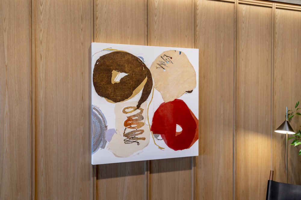 ウェルビーイングな働く環境づくりの新空間に、自然のぬくもりを感じるアートワークをおさめました。