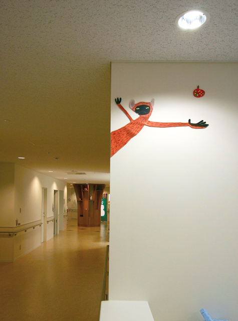 名古屋第一赤十字病院 小児医療センターは、日本初の総合病院内に設けられた小児医療専門機関として幅広い先端医療を行っている。病棟の改築に伴い、アート計画の総合アドバイザーとして名古屋市立大学の鈴木賢一教授を迎え、スタッフ、設計者、アーティスト、アートプロデューサーによる療養環境委員会を創設し、計画が策定された。