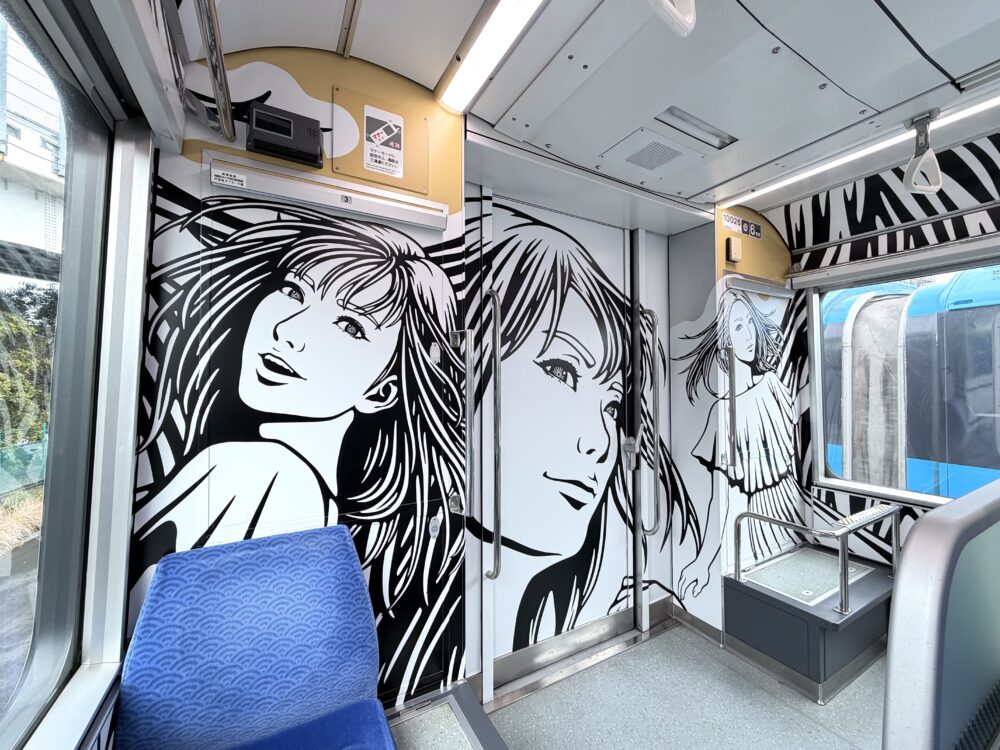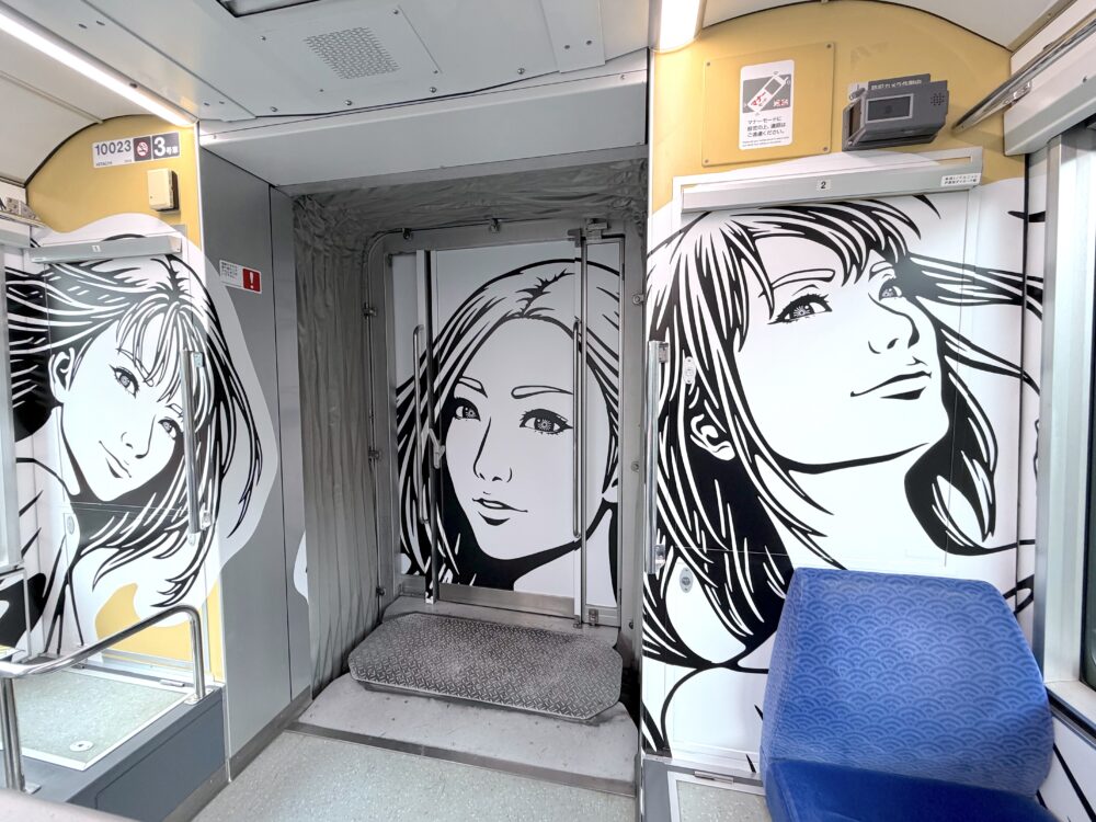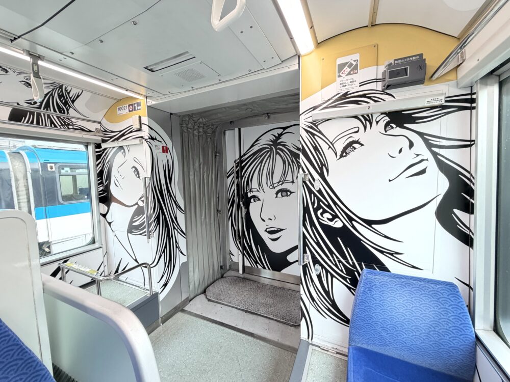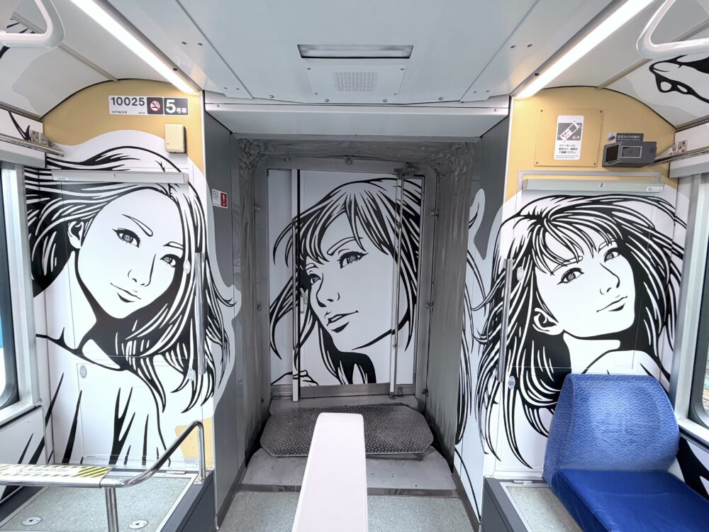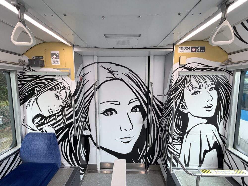 また、乗車してみればその女性たちの遠近感のない世界が目の前に広がり、これは広告でもイタズラでもなくキャンバスとして機能している車両なのだと認識できる。来訪して観る人は「日本に来た」と感じ、日常的に観る人は驚きや気づきで「非日常」を感じさせる女神たちである。
