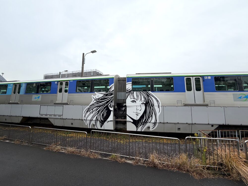日本と海外を結ぶ国際線との架け橋であるこの10000形のモノレールはグリーンとスカイブルーの組み合わせで沿線の象徴である「空・海・緑」を表現している。その車両色に対しモノクロで描かれた3人の女性像は、貼られたステッカーやシールと呼ぶには巨大であり、輪郭線で表現する浮世絵や漫画といった「和」を意識させる。